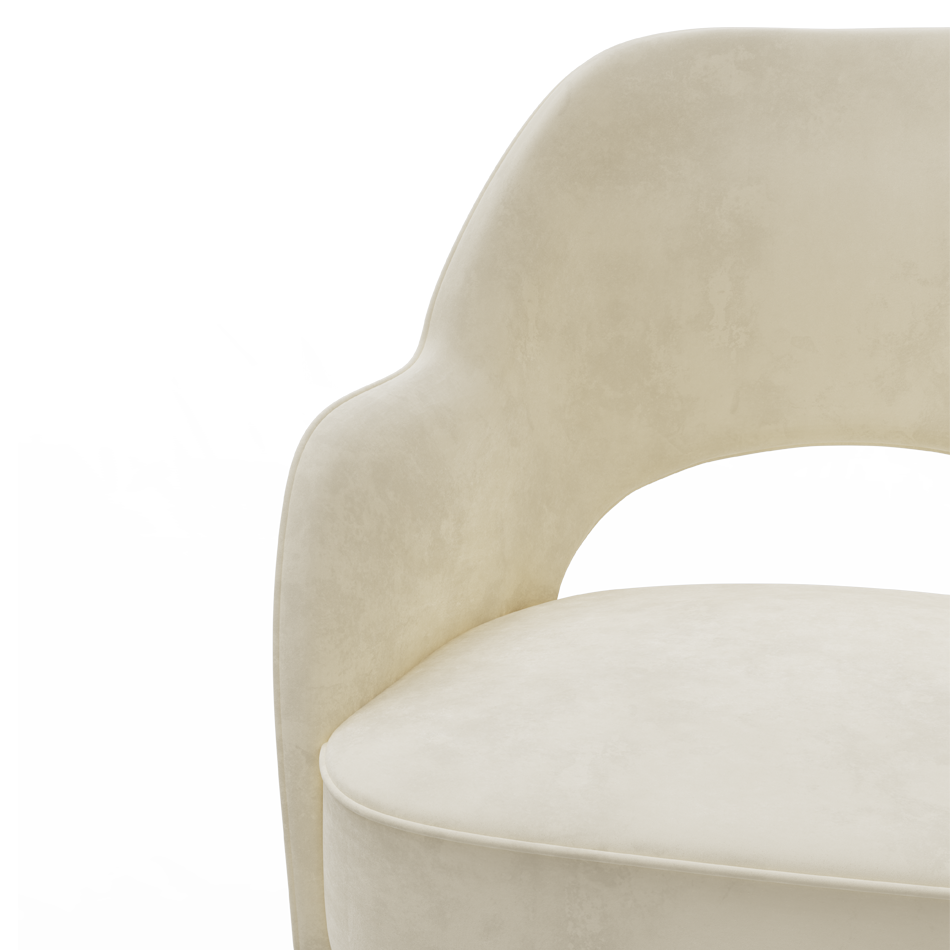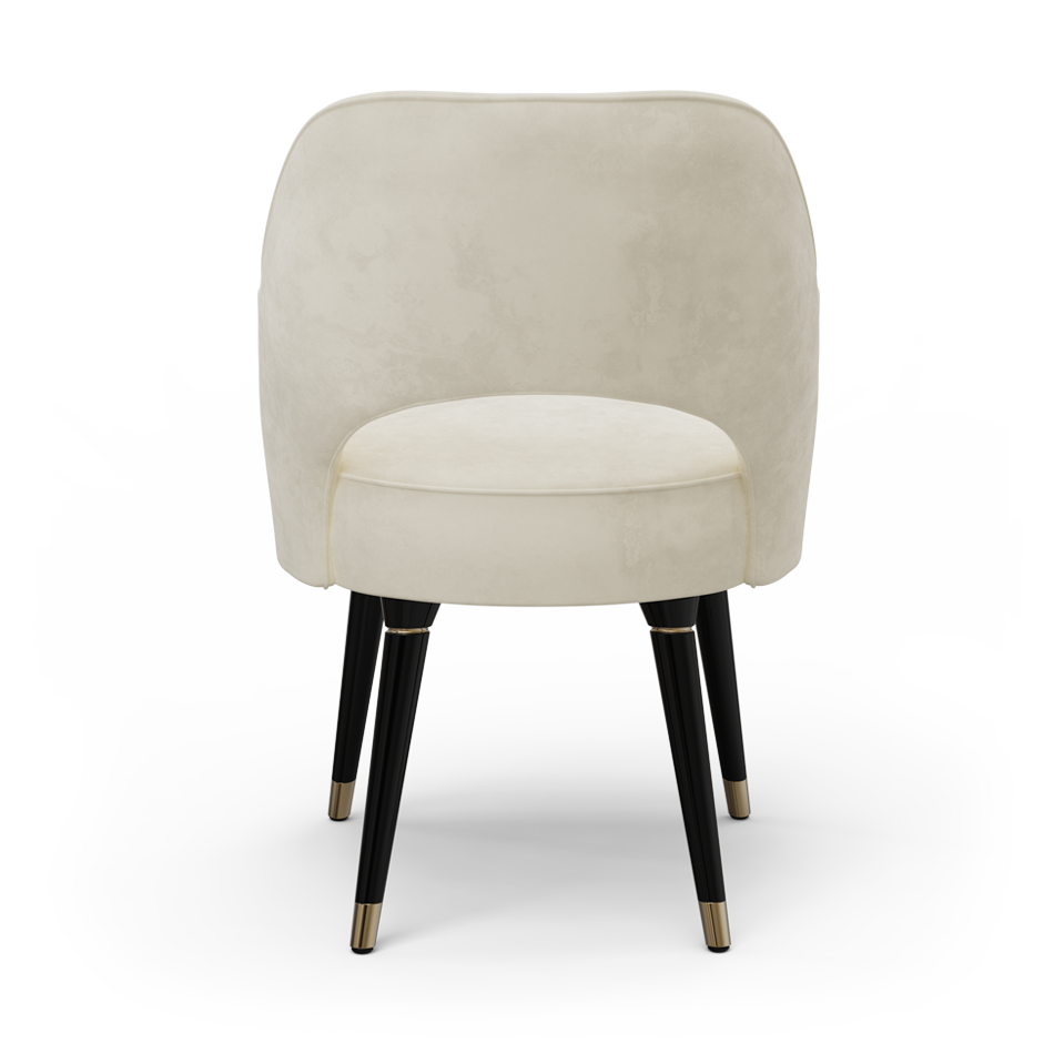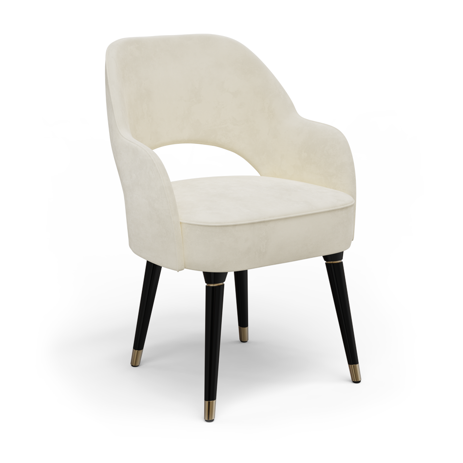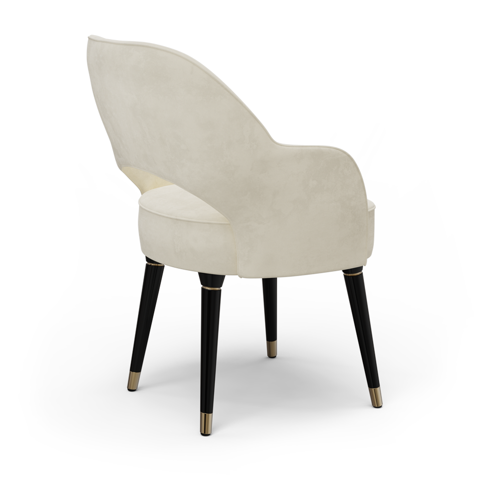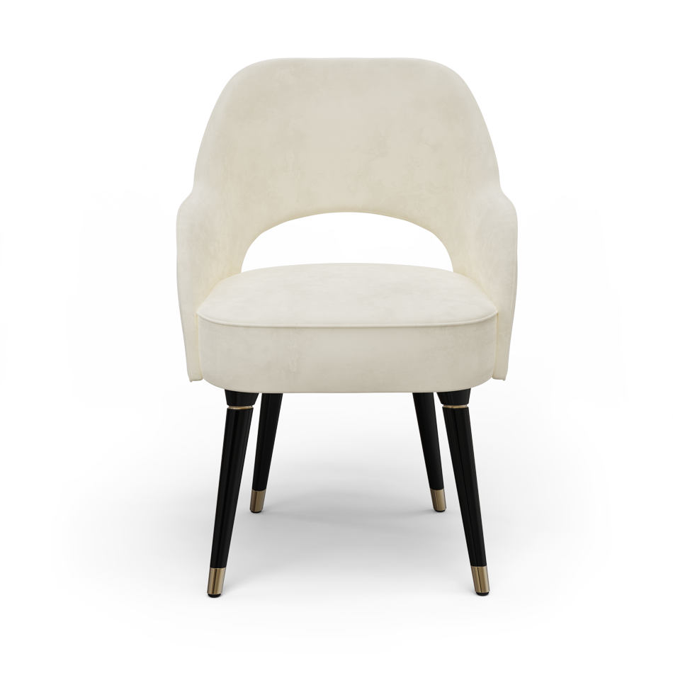 The Collins dining chair, now with armrests, is a harmonious blend of contemporary elegance and timeless comfort. Its plush velvet upholstery, available in a range of luxurious colors, invites you to linger over meals and conversations. The chair's distinctive silhouette, featuring gently curved armrests and tapered legs, adds a touch of sophistication to any dining space.