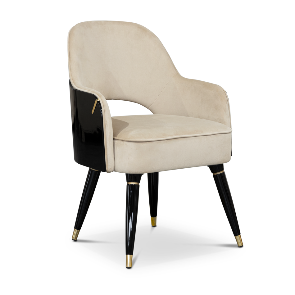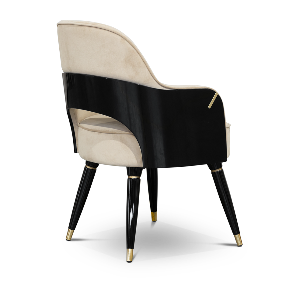 A luxurious and sophisticated piece that exudes timeless elegance. The contrast between the soft velvet and the sleek black lacquered wood creates a visually striking and tactile experience. Whether you're hosting a formal dinner or enjoying a casual meal, the Collins Dining Chair with armrest II is the perfect choice for adding a touch of luxury to your home.