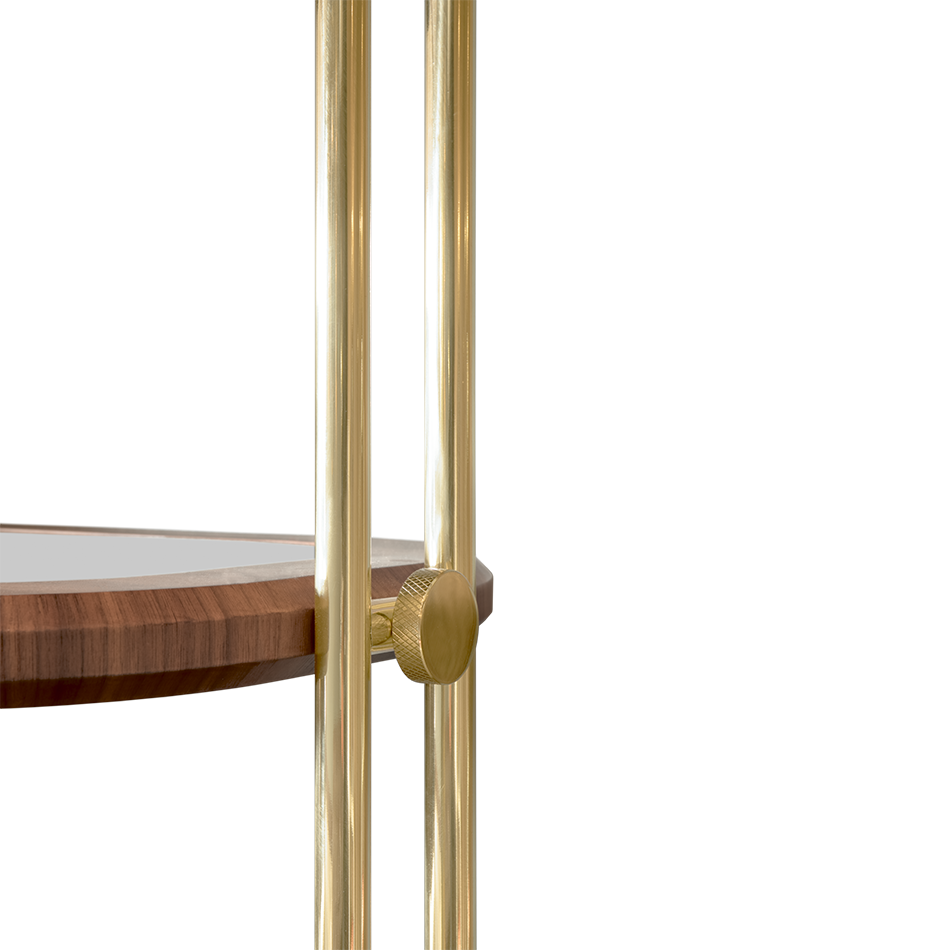 Part of the Minelli family, this bookcase is perfect for any mid-century lover. It's a furniture piece that definitely calls attention in the best way, providing elegance and space with its walnut wood and smoked glass shelves, as well as a whole structure built in polished brass. Ready to be enchanted by Minelli bookcase?