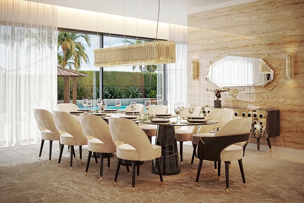 A modern dining table with capacity for 8 people, Bertoia is a majestic statement piece for any dining room. Refined solid marble, enhanced by a metal ring on the countertop. Curated trendy materials, a stunning homage to design. Perfect for your home decor, guaranteed to stun.
