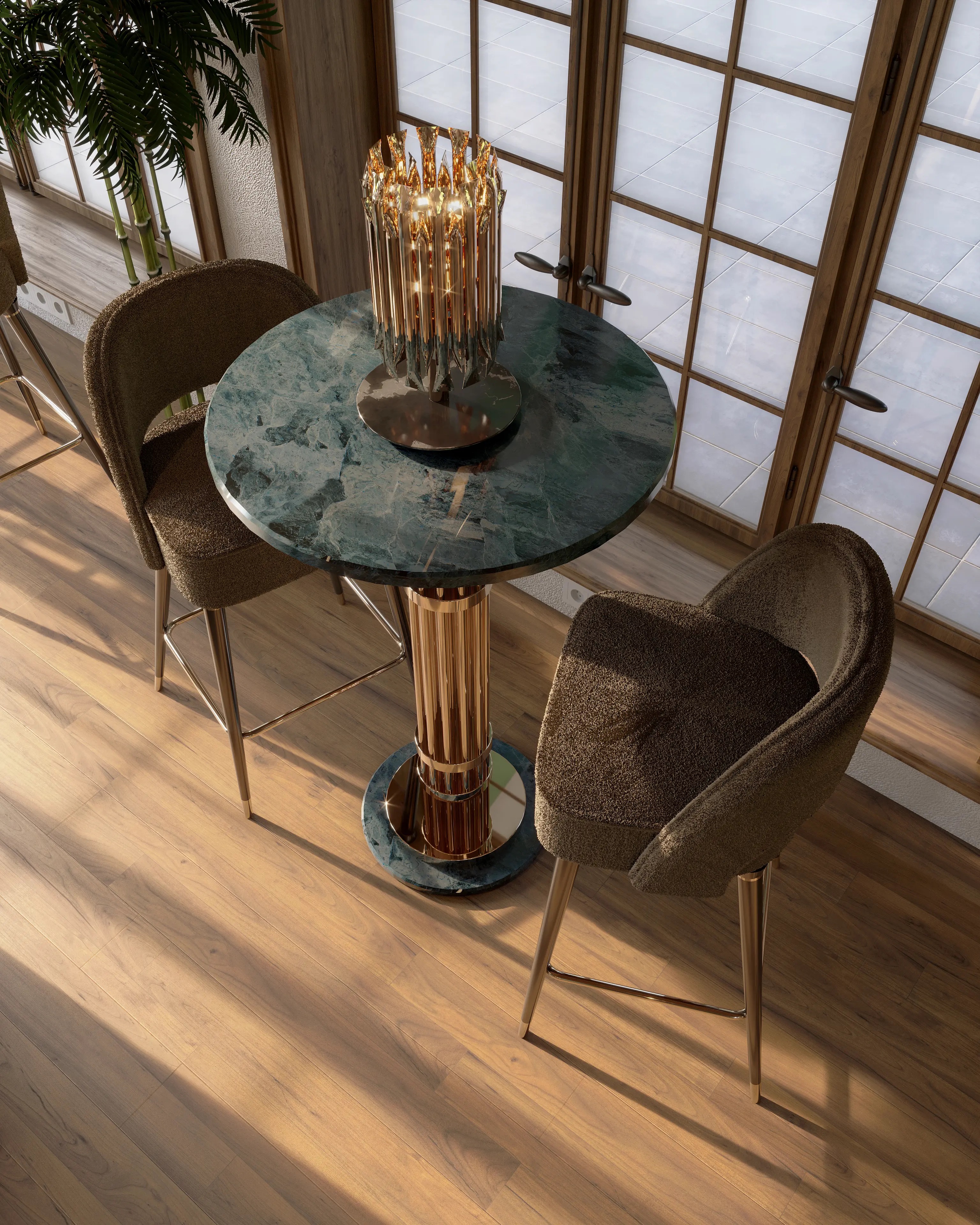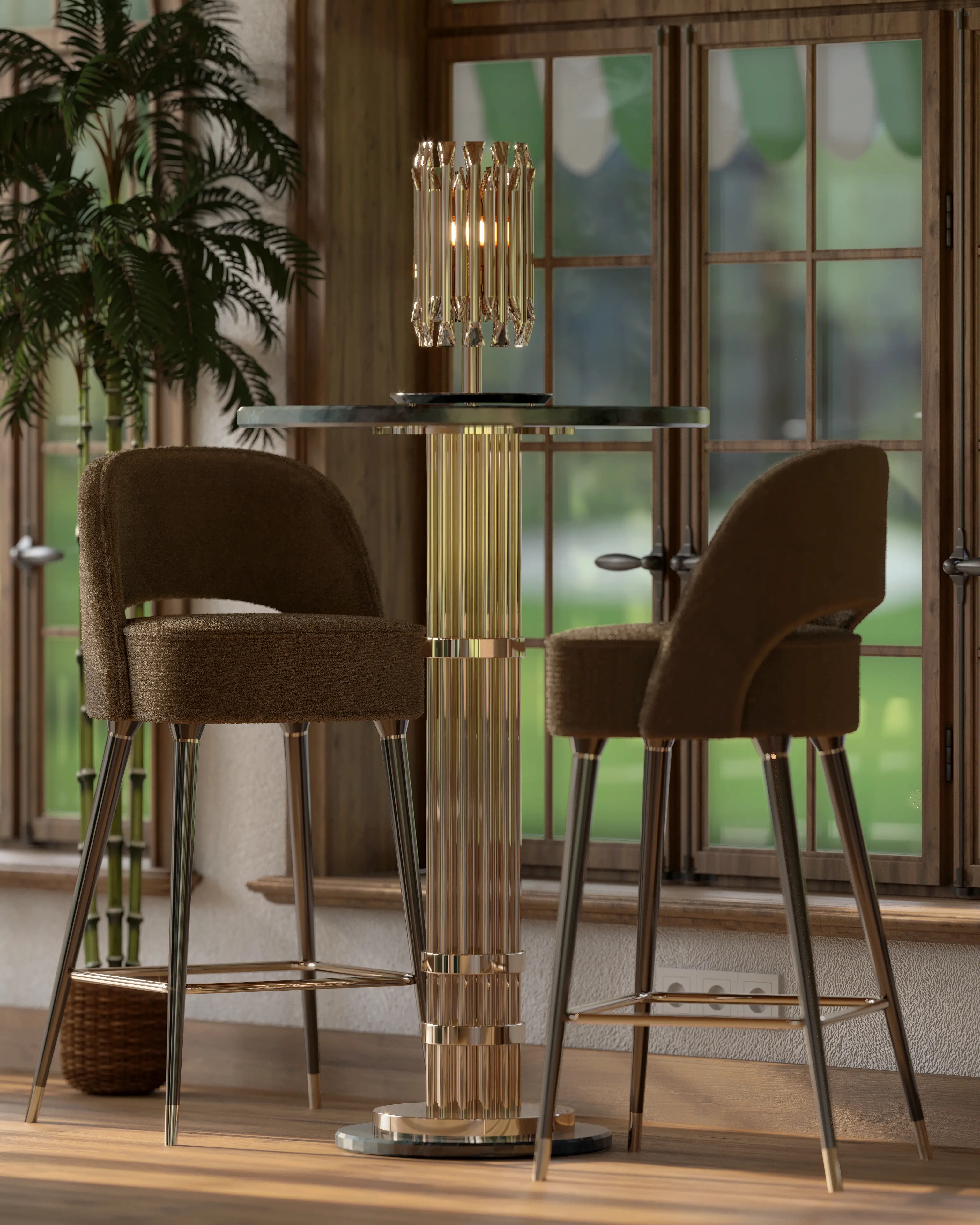 A pub table inspired by mid-century modern design, Janis features an art deco twist that recalls us of the glamour of the '20s and '30s. Its structure is designed to be intricate and gorgeous in its nature. Janis Bar Table is always the centerpiece of every space with a timeless look that can be used for a living space or a cocktail party.