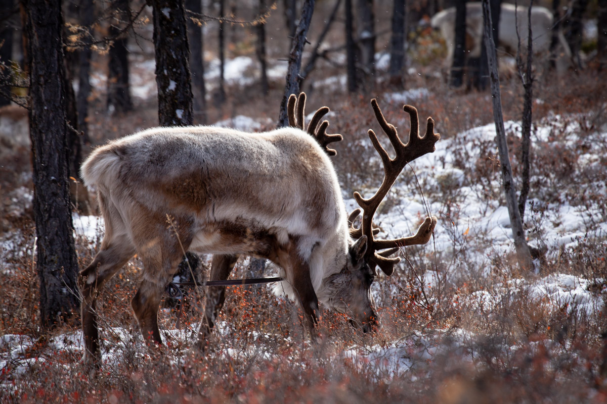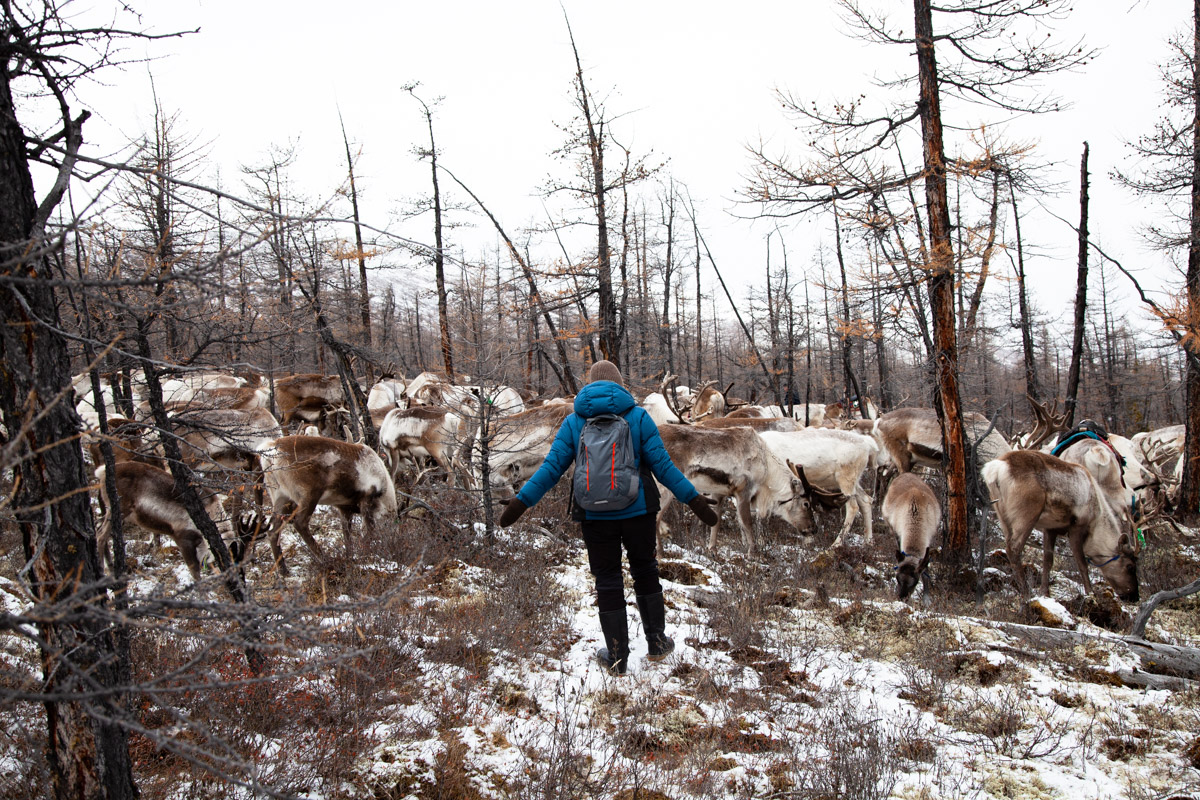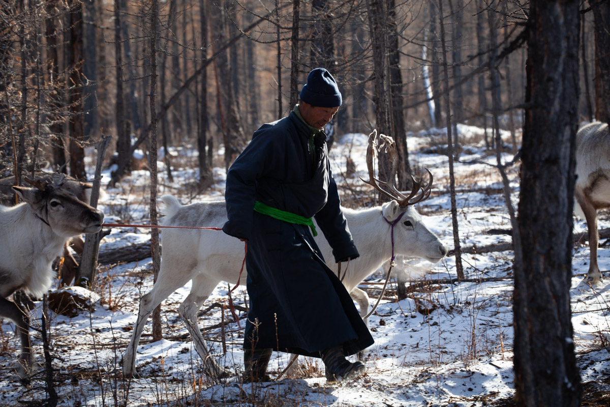 Les Tsaatans relâchent leurs rennes tous les jours au petit matin pour les laisser manger le lichen dans les montagnes. Ce sont généralement les jeunes qui les gardent une bonne partie de la journée pour les empêcher de s’échapper, mais surtout pour les protéger des loups. Une fois de retour au camp en fin de journée, ce sont les femmes qui sont chargées de les traire.