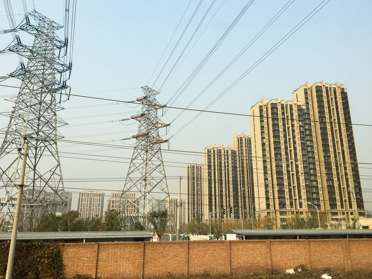 Lorsque vous entrez en Chine, le paysage change radicalement : fini la tranquillité des grands espaces de la steppe mongole parsemés de quelques yourtes… vous entrez dans un monde bétonné à outrance où les ponts gigantesques, les blocs de tours de 30 étages, les lignes haute tension et les autoroutes flambant neuves ont remplacé la nature qui devait, autrefois, se trouver quelque part par là.