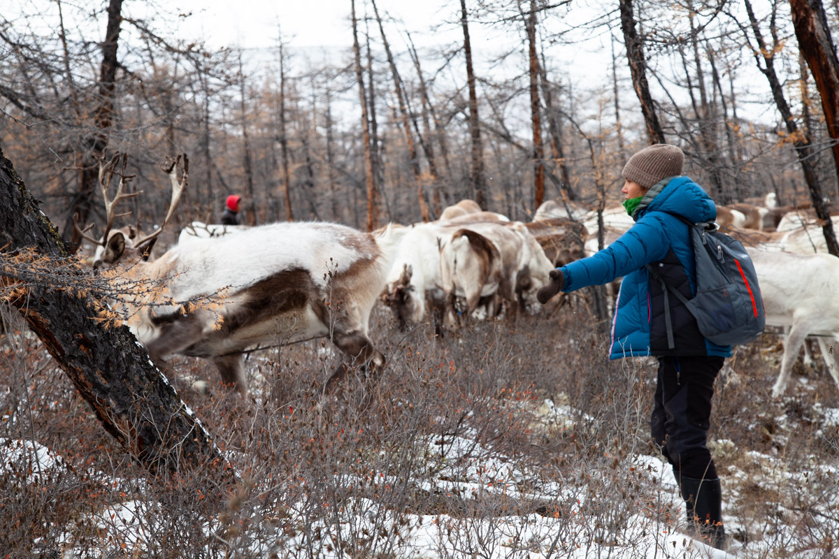 Tsaatans release their reindeer everyday in the early morning to eat the fresh lichen in the mountains. It is usually the young people who keep them a good part of the day to prevent them from escaping but especially to protect them from the wolves. Women are the ones in charge of milking them.