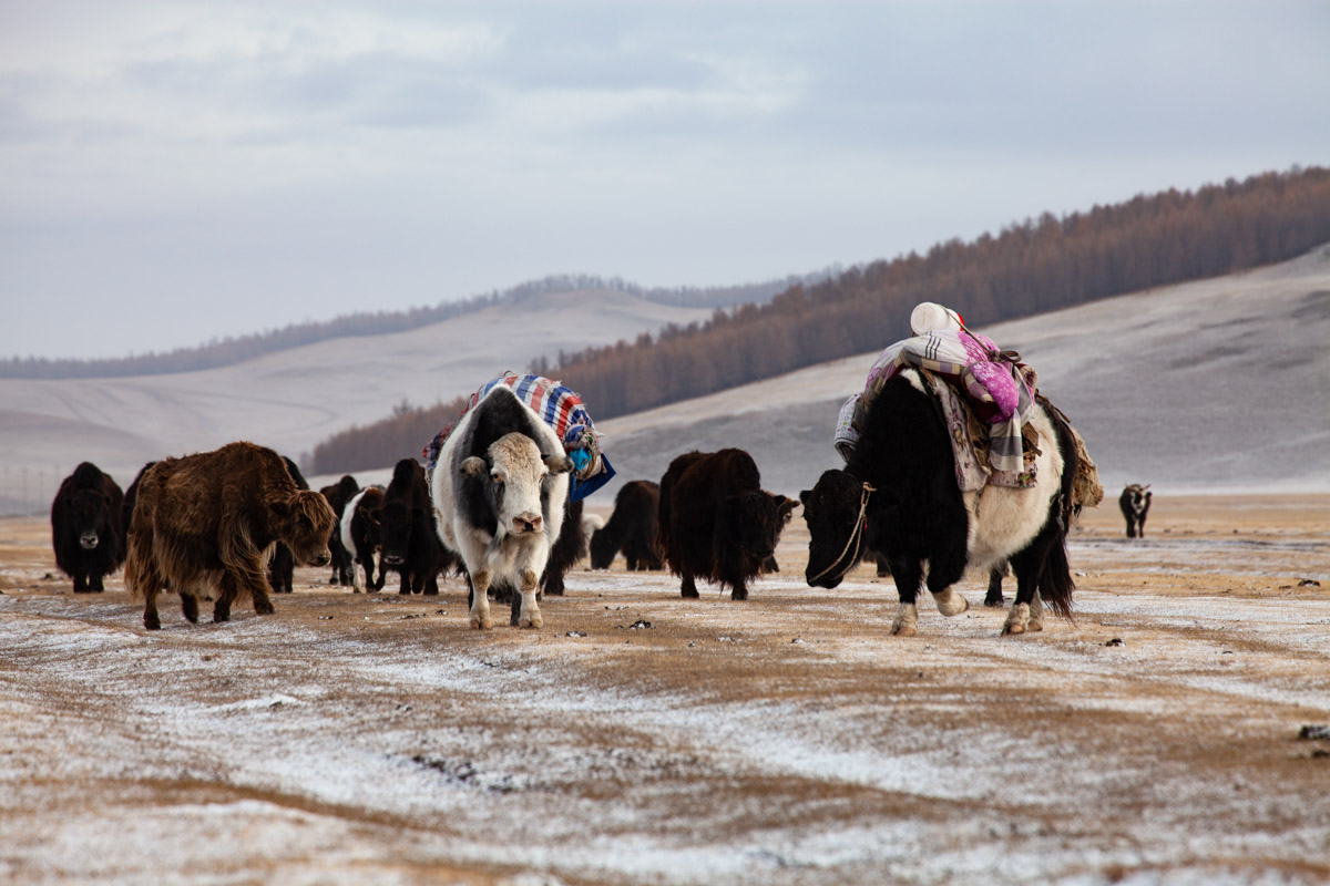 Also called as Dukhas, they are currently about 40 Tuvan families living in the Khovsgol region in northern Mongolia, close to the border with Russia. They are one of the last groups of nomadic reindeer herders in the world. Their sense of community is structured around the reindeer affirming that if someday the reindeer disappear, so too will their culture. They use the reindeer milk for cheese and yogurt and only a few reindeer are slaughtered during the year for meat and pelts. The reindeer also provide transportation.