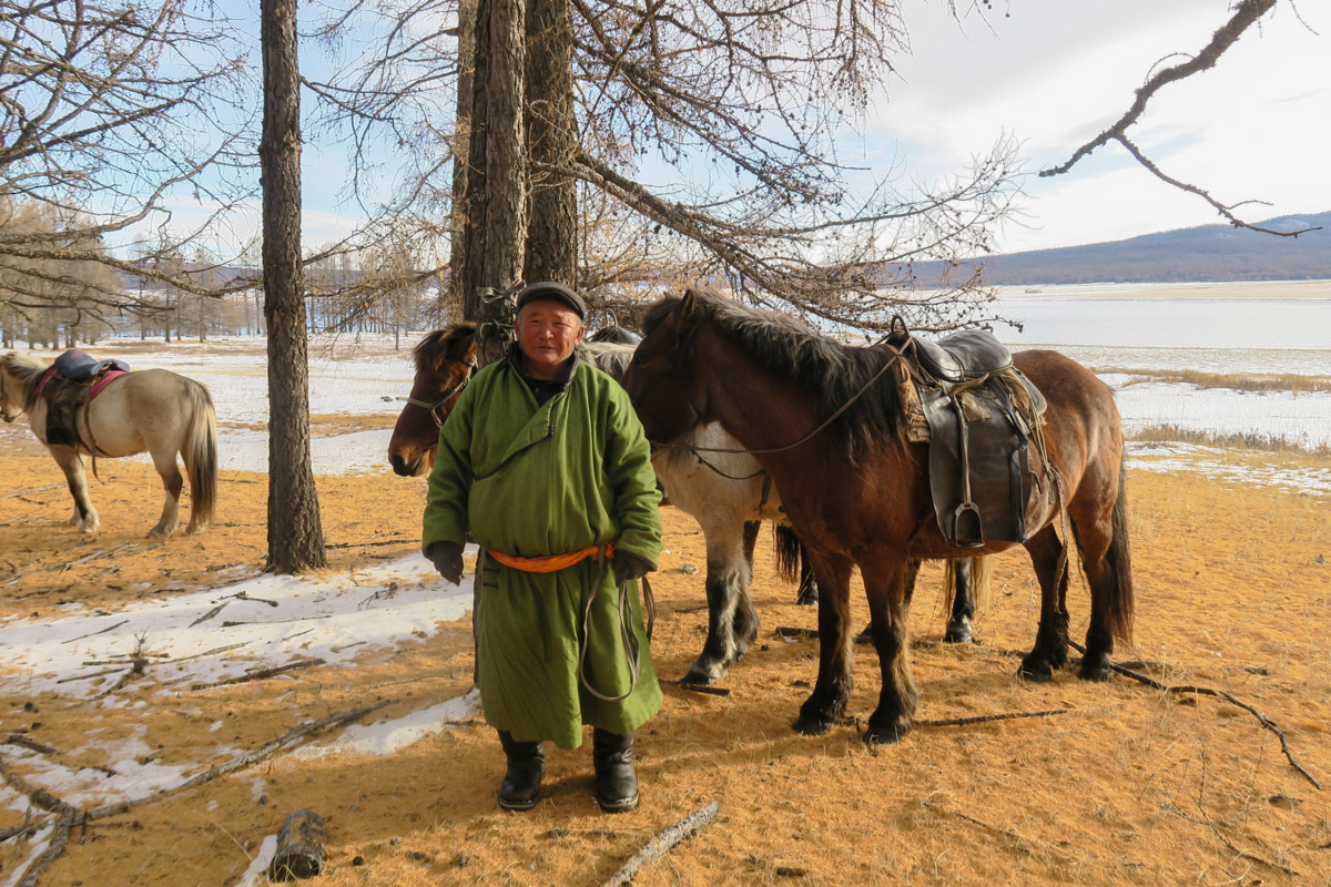 We drove to the eastern part of the lake to stay with a nomad family who owned horses. We had the best time exploring the lakeshores and surroundings riding the horses and feeling we were almost the only ones in such a vast territory. Once again, the landscapes are impressive. It really sounds cliché but we cannot stop being impressed by the landscapes in Mongolia… A sense of incredible freedom to ride these semi wild horses along the steppes and forests, all covered by snow.